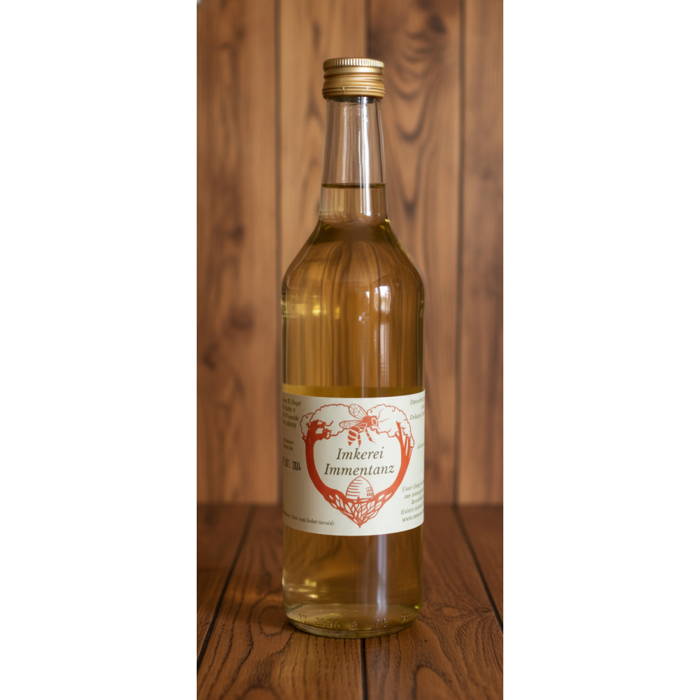 Die in der Kellerei oft benutzten Verfahren zur Schönung (Klärung mit Bentonit oder Gelatine; Schwefelung, Feinfilterung, Färbung mit Zuckerkulör) kommen bei uns nicht zum Einsatz. Dadurch ist unser Met sehr hell, und es können sich in der Flasche leichte Trübungen/Ausflockungen am Boden absetzen. Wir sehen dies als Qualitätsmerkmal eines Naturproduktes.